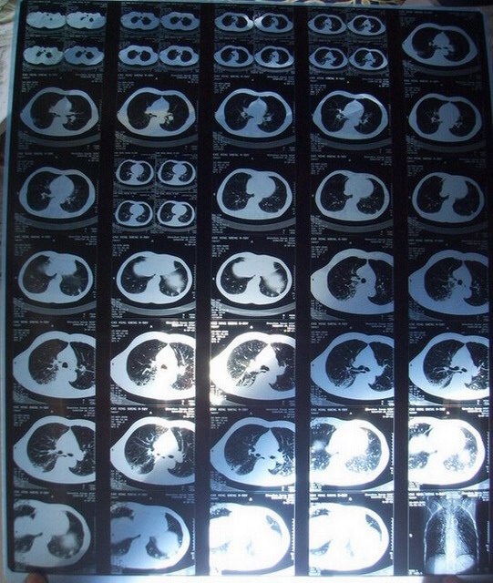 我父亲,58岁,近月来咯血,不发热,不胸闷,常年抽烟。去医院拍胸片,医生说没有异常;另一医院胸部ct检查如下,但是没有结论,让其住院治疗,说一定要住院才告诉什么病,也不给开药。老父老实巴交,心疼钱;转其他地方看中医至今,希望各位能帮我诊断诊断,谢谢