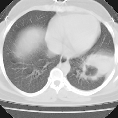 考虑:左下空洞性肺癌伴两肺转移