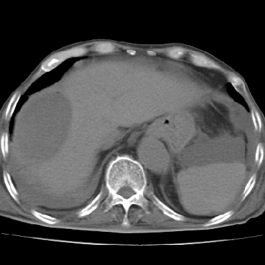 以下是引用dyqct在2006-12-4 19:54:00的发言:[br]考虑:1、肝包膜下脓肿;[br] 2、少量腹水;[br] 3、右侧少量胸膜腔积液。