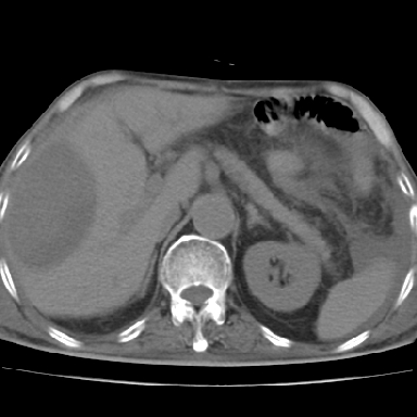 以下是引用qian在2006-12-4 19:11:00的发言:[br]胸腔和腹腔内均见有液性影,肝上极包膜下有一较大椭圆形低密度影,密度均匀,边缘清晰,结合病史考虑术后肝脓肿并胸腹腔积液。