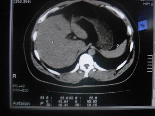 以下是引用dyqct在2006-12-6 16:02:00的发言:[br]肝右叶密度不均,脾大。强烈要求增强扫描除外浸润型肝癌。
