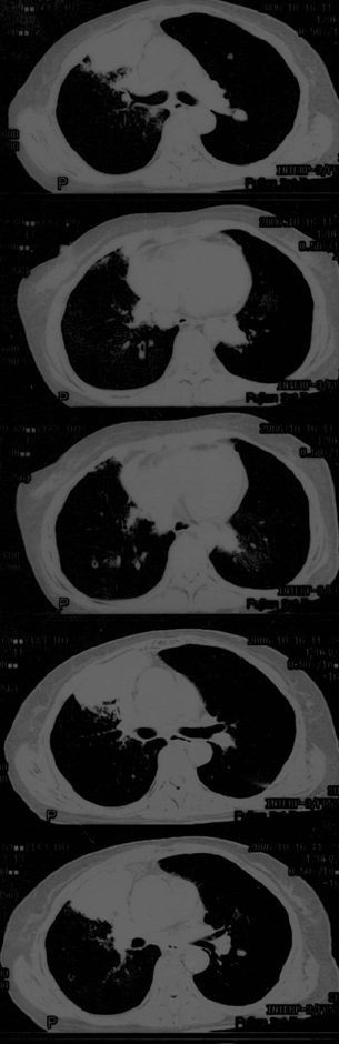 传上图片看不清,可是给我的感觉是恶性的,虽然还需跟肺结核相鉴别.