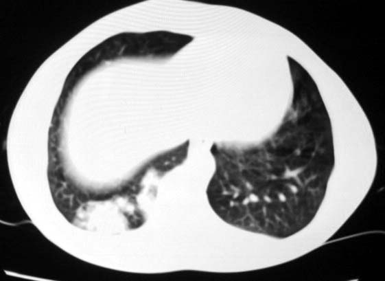 但下肺毕竟不是结核的好发部位,而且病灶形态、密度也不怎么符合,我大胆猜测一下:因为右侧主支气管较左侧短而直,如果有异物容易掉落入右肺。更因为重力关系容易进而掉入右下叶支气管,继而沉积在肺底引起炎症。这个诊断需要临床病史,建议楼主详细追问有无异物吸入史以及反复肺部感染病史,特别是有无米饭之类的异物吸入病史。