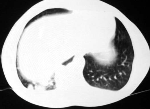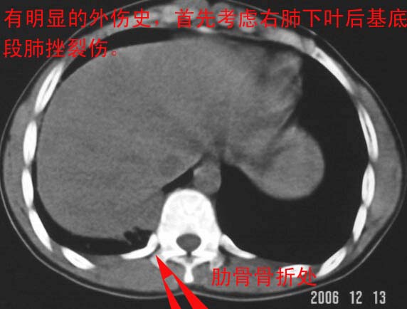 标题: 回复:ct5614:外伤病人男,20岁,右上腹痛.余肺野(-)