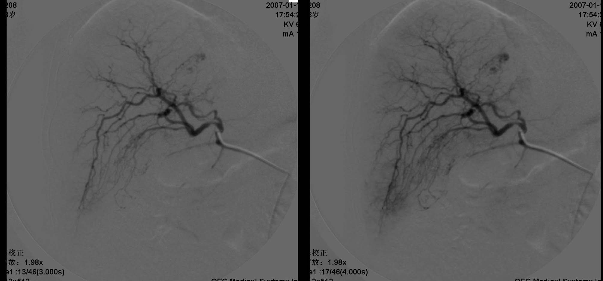 标题: DSA0073:肝转移性肿瘤、肝血管瘤DSA影像