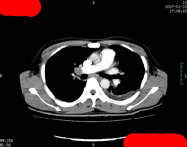 以下是引用rjg199343在2007-1-24 23:22:00的发言:[br]增强扫描见右肺动脉干、左下肺动脉见充盈缺损。印象为:1、右肺动脉干、左下肺动脉栓塞。 2、左侧胸腔积液合并左肺下叶被动性肺不张。