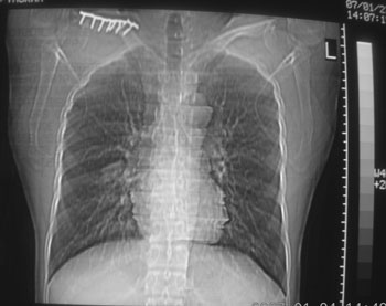 锁骨骨折复查,发现肺内高密度影,行ct检查。