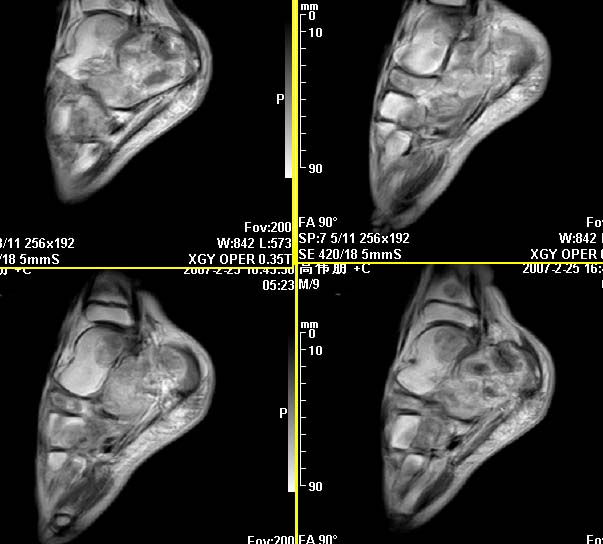 以下是引用zhangzhongshou在2007-7-26 22:24:00的发言:[br]为啥没有平片呢?平片就能诊断了吧