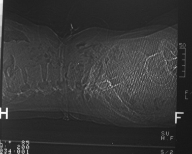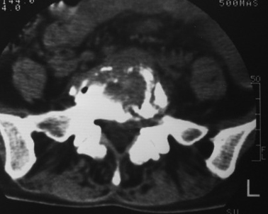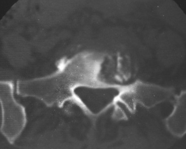 以下是引用gaozhengyi在2007-3-1 19:39:00的发言:[br]骨质破坏并砂砾样死骨为椎体结核的表现。椎体结核骨质破坏区的特点是呈虫蚀状,常可见硬化缘。死骨表现为片状高密度影,正如本例。