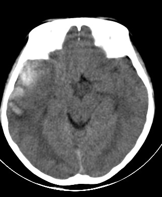 外伤一天,m,21y,骨窗示右颞骨骨折.