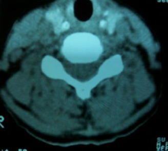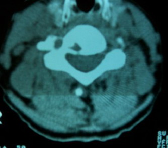 以下是引用狙击手在2007-3-2 10:35:00的发言:[br]颈椎周围软组织无明显变化,颈椎右后缘见低密度影,外周见硬化带,考虑许莫氏结节。