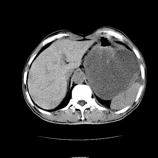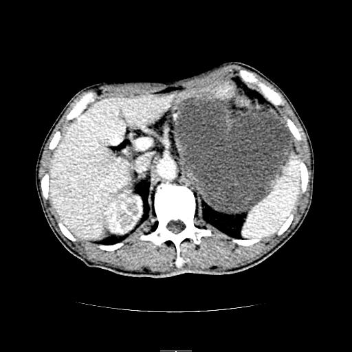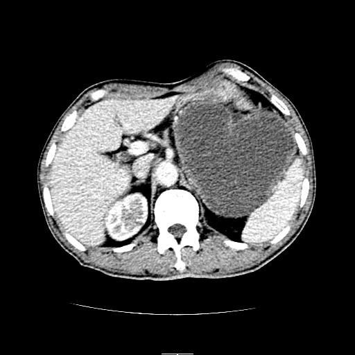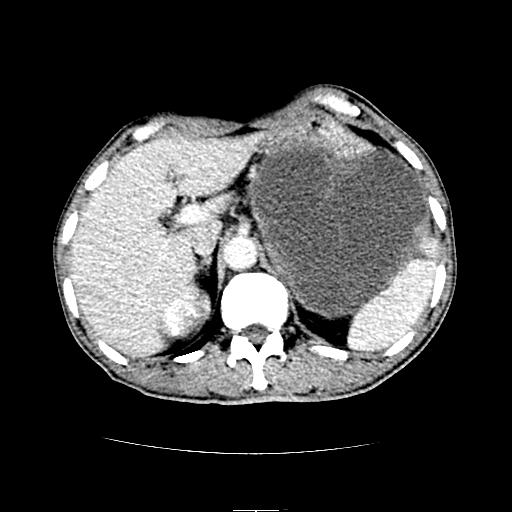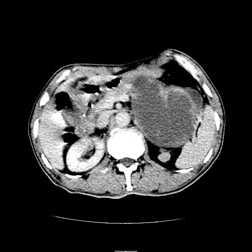 以下是引用dyqct在2007-3-5 8:43:00的发言:[br]左上腹胃、脾及胰腺间巨大囊性占位性病变,内见多数薄隔,有轻度强化,明显占位效应。左肾见一小囊肿。[br]考虑:1、左上腹巨大囊肿(可能来源于胰腺)。[br] 2、左肾小囊肿。