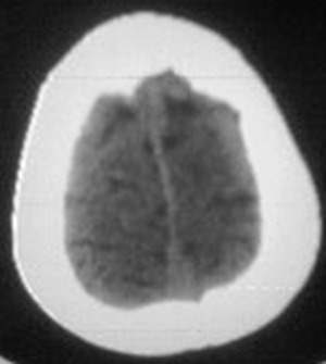 PDE0028:[讨论]男,7岁。头顶部包块。CT值76Hu。