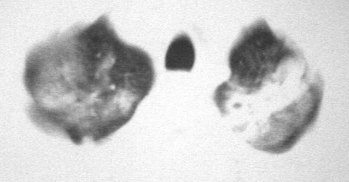 以下是引用dyqct在2007-3-19 14:33:00的发言:[br]双肺内中部见略不对称性蝶翼状高密度区,边界不清,部分呈磨玻璃样密度,并可见含气支气管征。肺门、纵隔内未见肿大淋巴结影。无胸腔积液。[br]考虑:1、肺炎,建议进一步查冷凝集试验除外支原体肺炎;[br] 2、不除外霉菌感染。