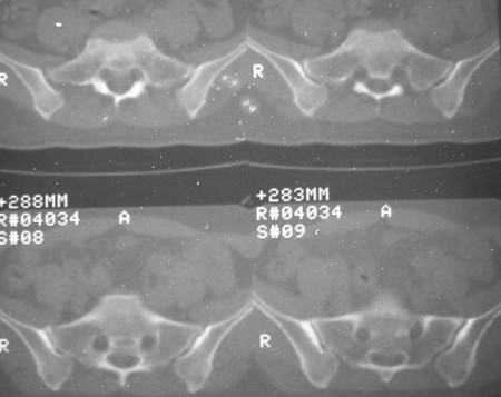 CT7246: F,30岁,下腰痛,同事的片子,请老师们看看,初