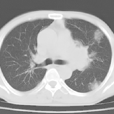 以下是引用zjzjr在2007-3-23 17:24:00的发言:[br]双侧肺门淋巴结明显肿大,以左侧为著,支气管受压变窄,肺内可见结节状及絮状高密度影,边缘模糊.考虑淋巴瘤肺内浸润.