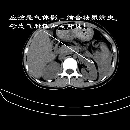 女,22岁,临床以糖尿病等病史入院,两年前有妊娠合并胰腺炎史,现有多饮、多尿、咳嗽、咳痰、左腰痛、发热等。因多种原因没做增强。