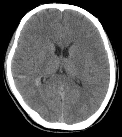 平扫见右颞叶、右侧脑室后角旁略高密度影,增强未见明显病灶,基本正常。不放心做mri检查