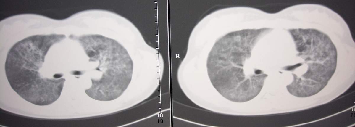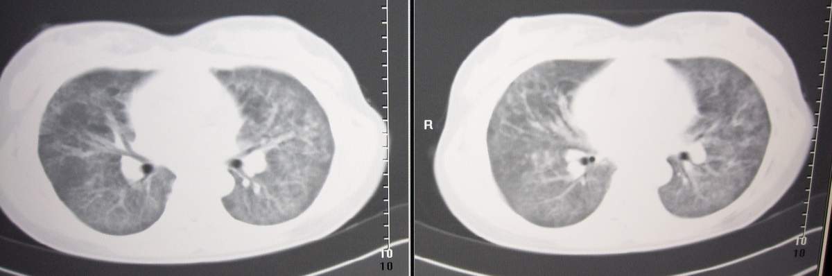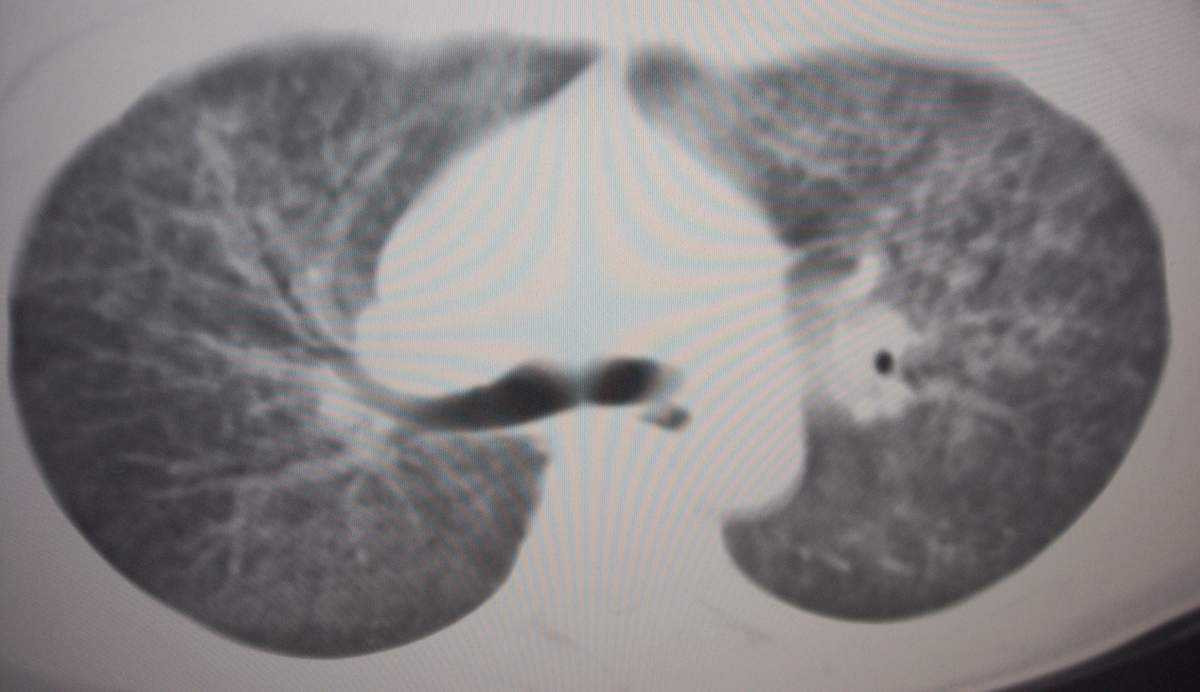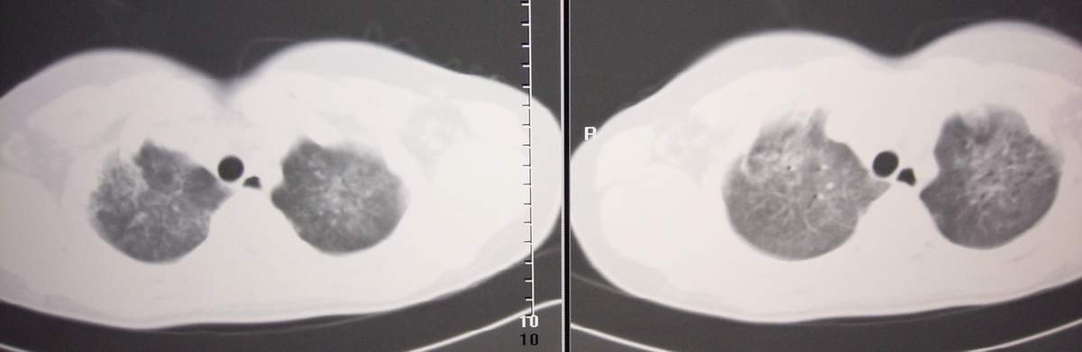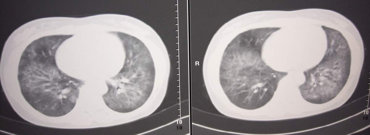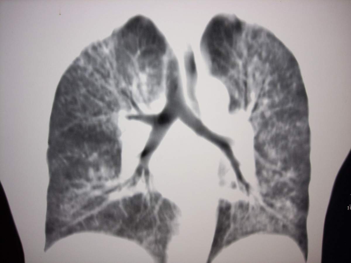 两肺弥漫性病变,考虑:1。肺水肿。2。肺蛋白沉积症。