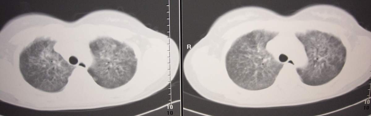 双肺弥漫性病变是肺部疾病诊断的难点和重点,需要很好的结合临床,如发烧不?心功能如何?免疫功能如何?另外我们影像科也应进一步把工作做细,如本病例应行高分辨扫描。