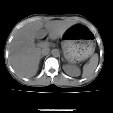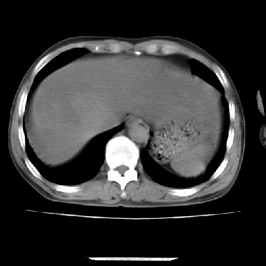 肋骨无骨折,腹腔未见游离液体,所以不均匀脂肪肝首先考虑,但如果病人情况允许还是做个增强检查放心