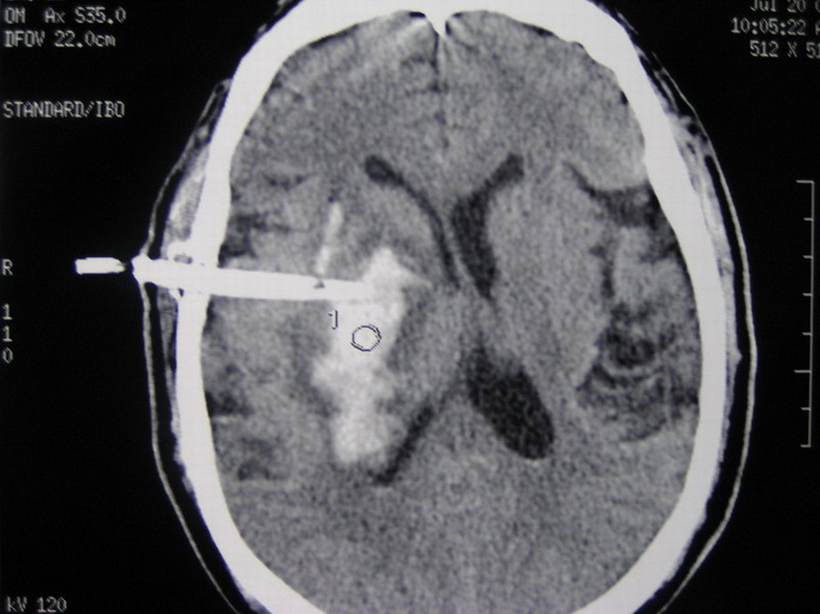 以下是引用13081830109在2007-4-3 22:44:00的发言:[br]感觉1:穿刺针为非专用的 不知是哪里生产的有专利证吗? [br] 2:穿刺点选择的往下了 该位置易引起继发性血肿[br] 3: 穿刺角度选择的往后了[br] 4: 侧孔位置不对 该位置在冲洗时极易抽出脑组织[br] 建议: 旋转穿刺针使侧孔向后方[br] 冲洗时用小注射器(5ml)以0.5压力为好[br] 尿激酶应用要慎重[br] 如患者病情允许不要用脱水药[br] [br][br][br][br]以上意见仅供参考[br]