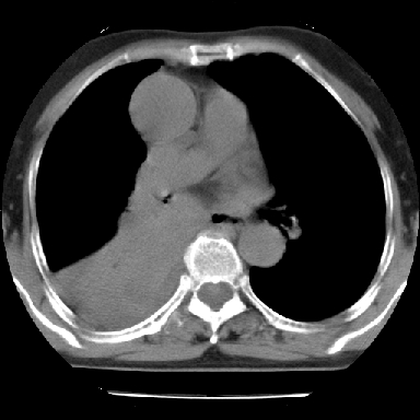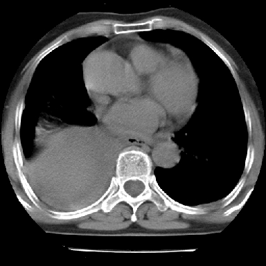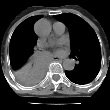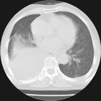 以下是引用苯小孩在2007-4-13 16:20:00的发言:[br]1、右下肺中央型肺癌并阻塞性肺不张、肺内转移、胸椎右侧附件亦有转移<横断层面第8层>.[br]2、右侧胸腔积液.