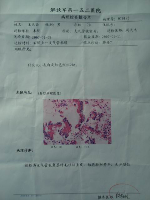 以下是引用我爱ct-mr在2007-4-18 20:42:00的发言:[br]高度怀疑肺癌 期待结果