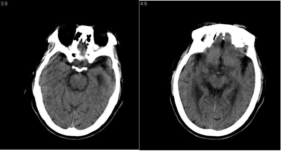 颅内多发梗塞灶,左基底节区囊腔形成。