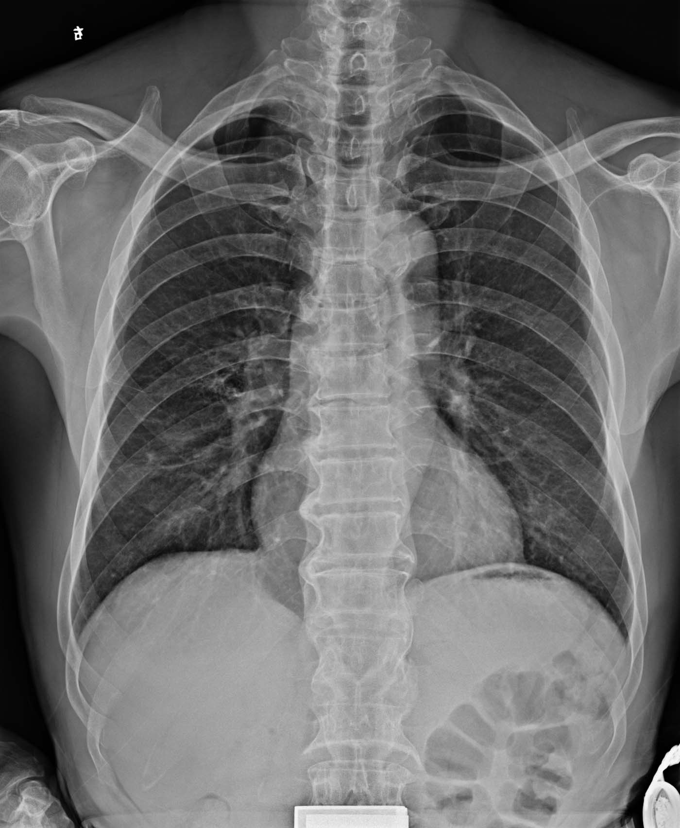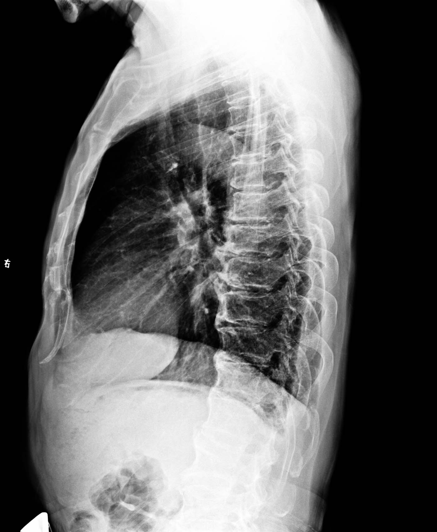 胸透发现右下肺囊状影或空洞影后进行摄片的。