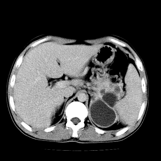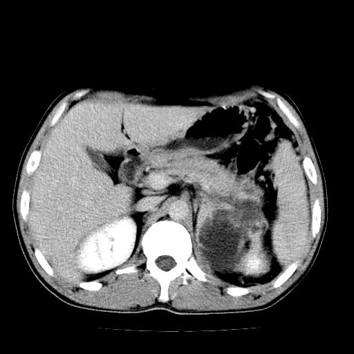 以下是引用andymaomao在2007-4-30 14:28:00的发言:[br]支持:1.慢性胰腺炎并假性囊肿形成可能;[br] 2.左肾形态稍增大,旋转不良。