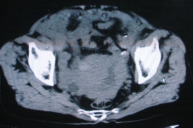 以下是引用卜一在2007-4-30 15:29:00的发言:[br]子宫明显增大,不规则,子宫壁不规则增厚,子宫腔明显缩小,子宫右侧软组织团块与子宫关系密切,内见低密度坏死区。考虑:子宫癌并周围侵润。