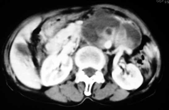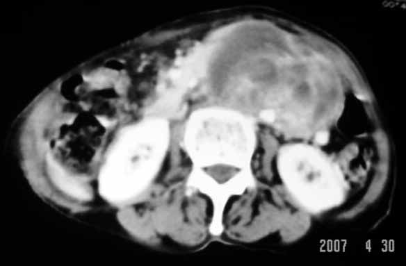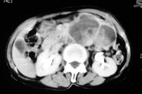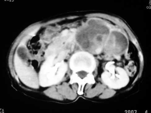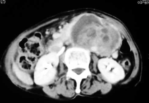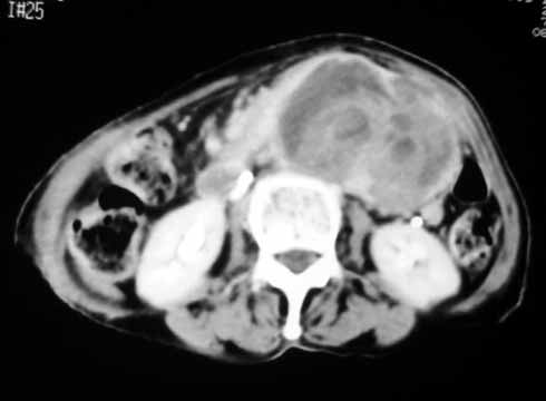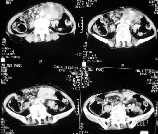 以下是引用余辉在2007-4-30 18:01:00的发言:[br]病灶前方的条状增强影是什么?若是胰腺,位置似乎有点低,若是十二指肠,似乎又不诫该是那样强化,姑且将其看作胰腺吧,那么考虑来源于胰腺粘液囊腺瘤可能性大,其次考虑来源于肠系膜或者后腹膜的肿瘤如平滑肌肉瘤,异位嗜铬细胞瘤及淋巴瘤等。