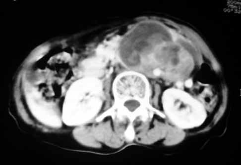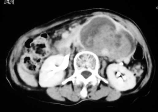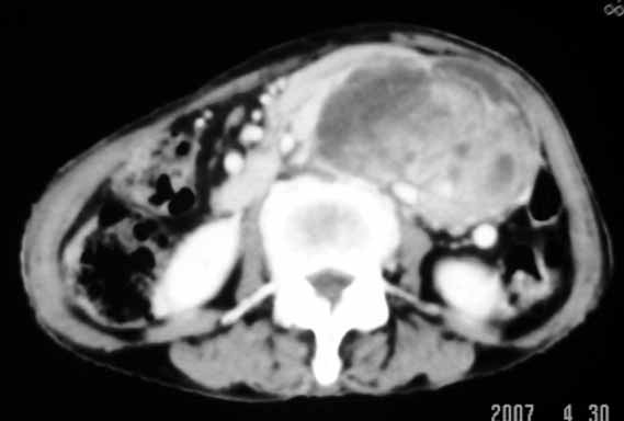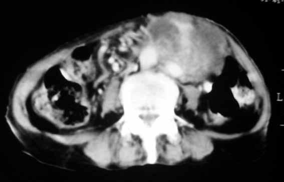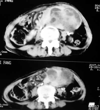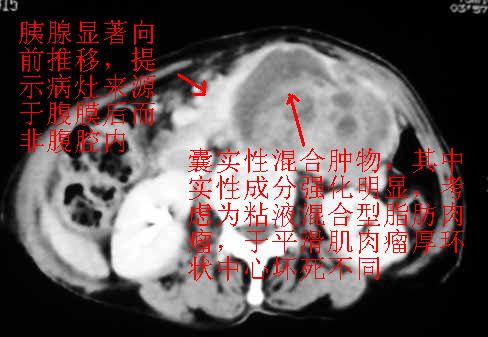 以下是引用天南地北在2007-4-30 17:42:00的发言:[br]增强扫描显示腹主动脉给包绕、推移。肿块不规则强化,[br]修正我在平扫的诊断[br]支持考虑:间叶源性肿瘤可能性大