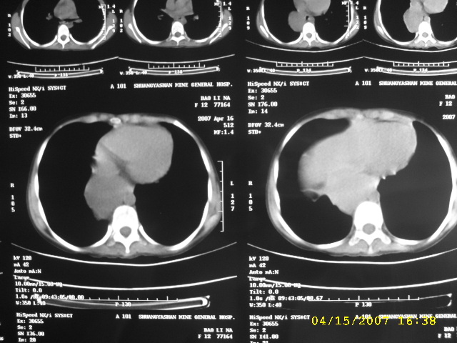 [br]女,12,后纵隔占位十余年,没什么特异性,考虑1纵隔囊肿2肺隔离症3神经源性肿瘤,建议增强