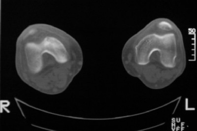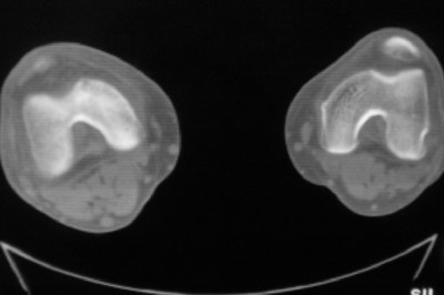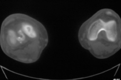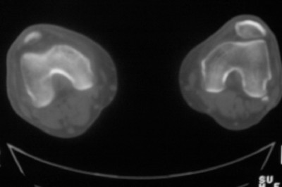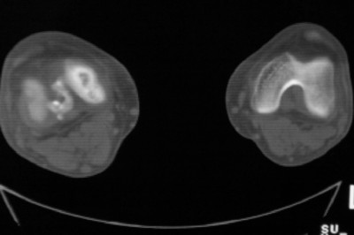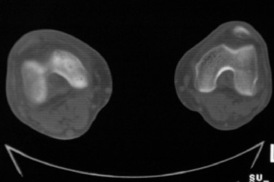 右股骨内髁关节面下多个不规则小囊变,边缘有明显硬化边,.......考虑: 1.关节面下骨囊变. 2.类风湿关节炎? 3.血友病?
