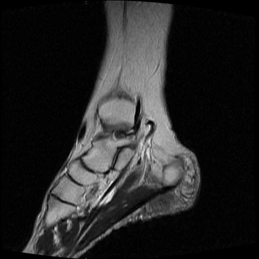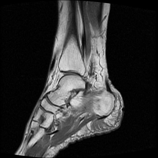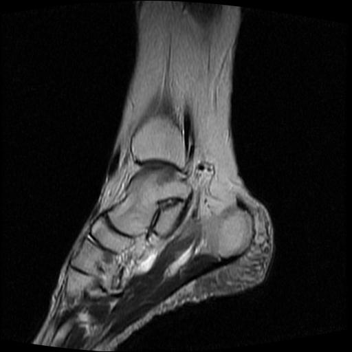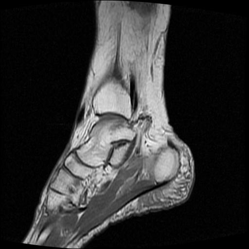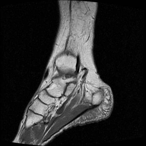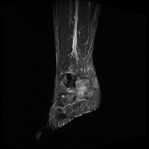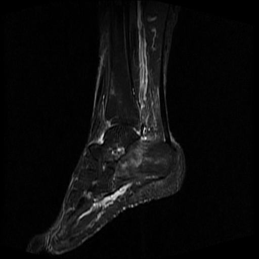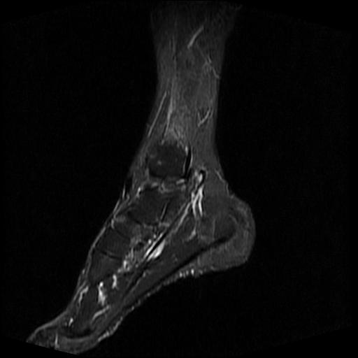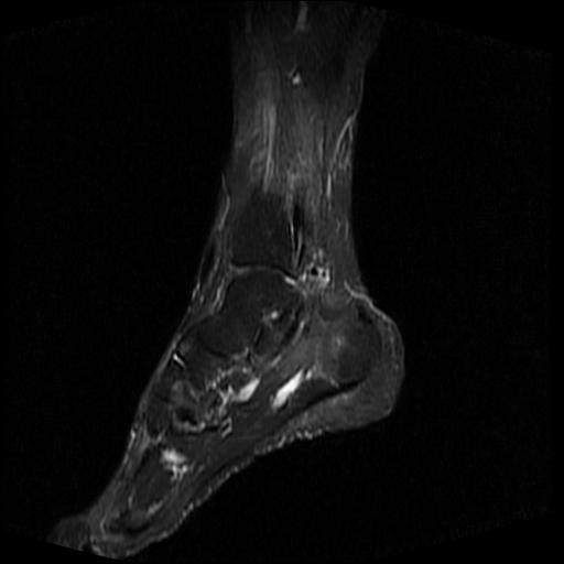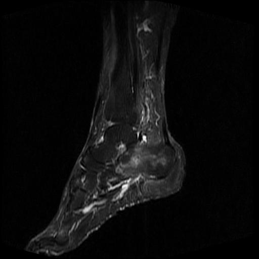 跟骨长t1长t2信号异常,边缘模糊(肿瘤一般边界清楚,故肿瘤不考虑),压脂像呈高信号--骨髓水肿(炎症?)。