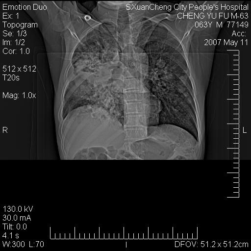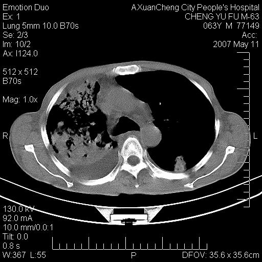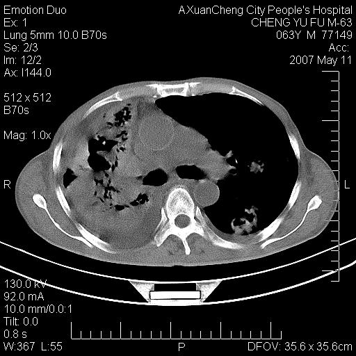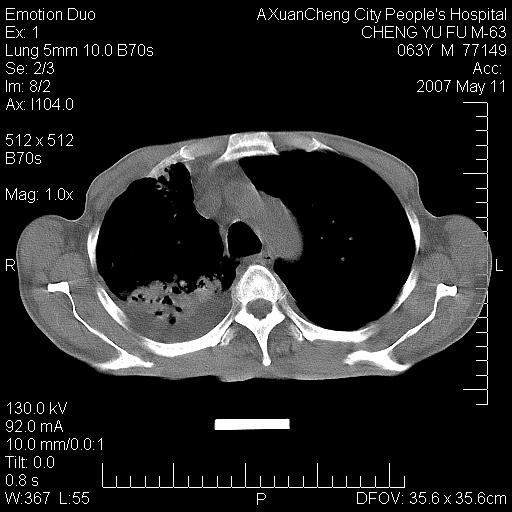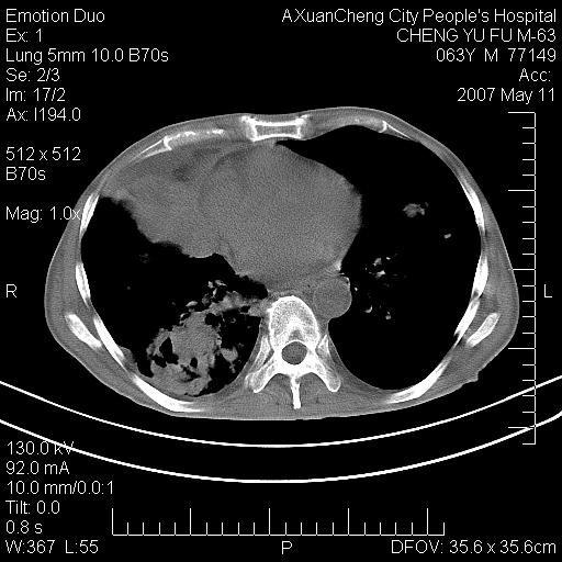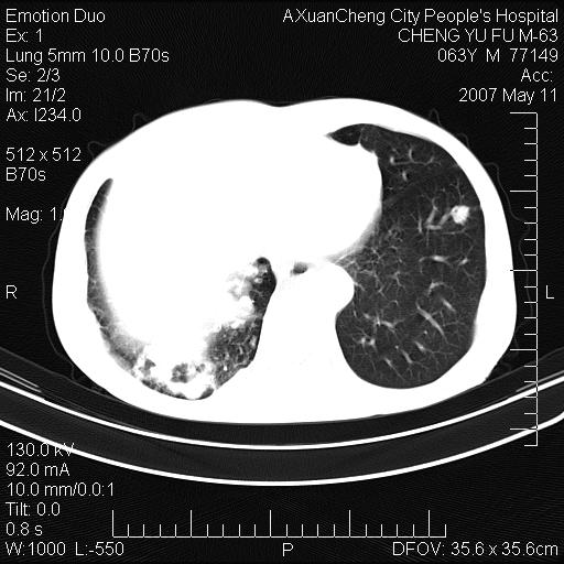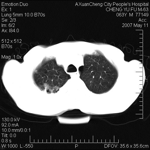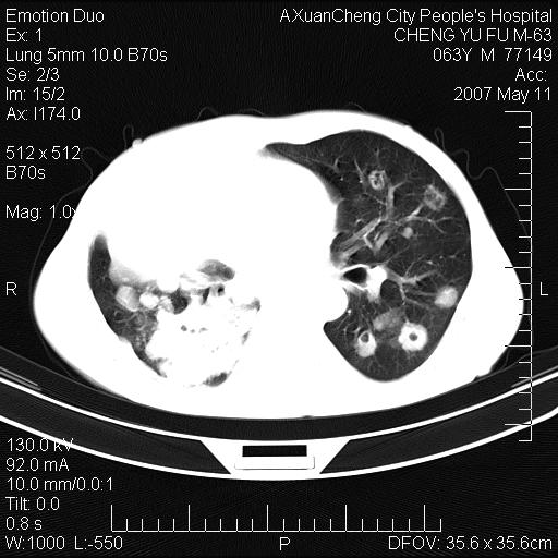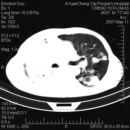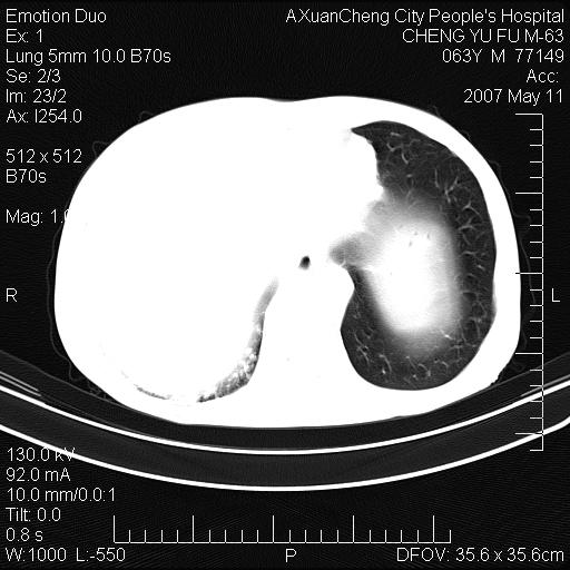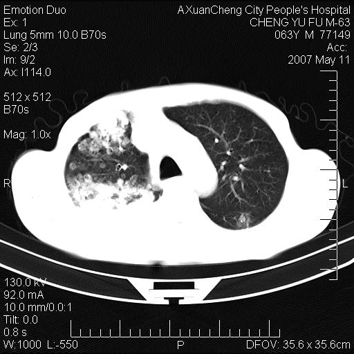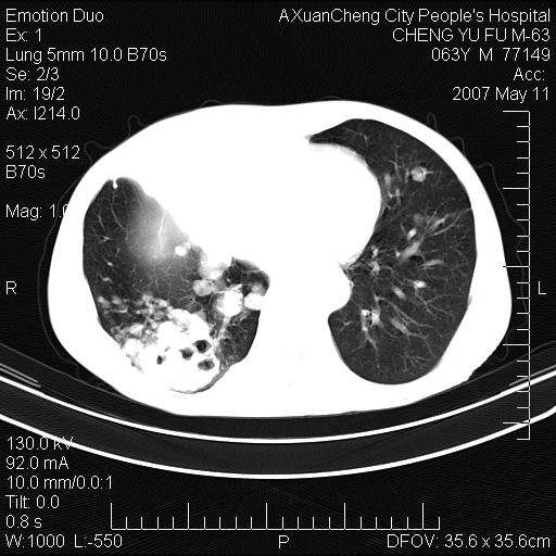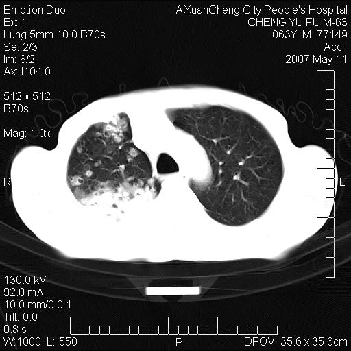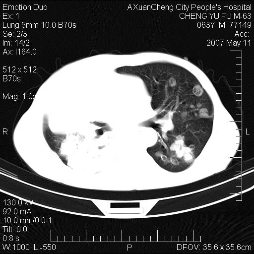以下是引用zhangzhongshou在2007-5-11 19:30:00的发言:[br]细支气管肺泡癌可能性大。