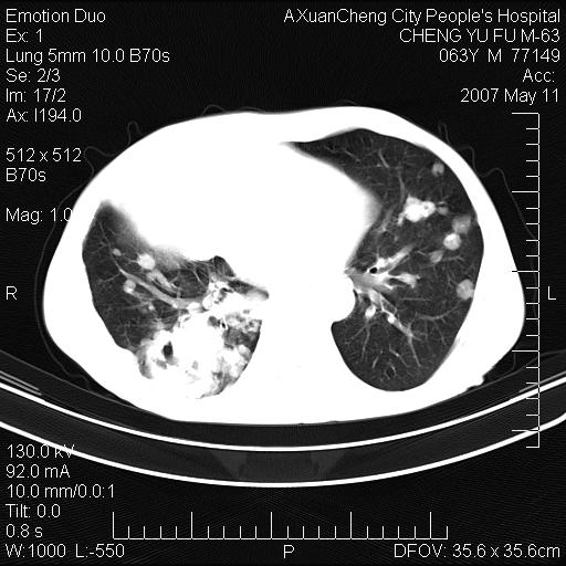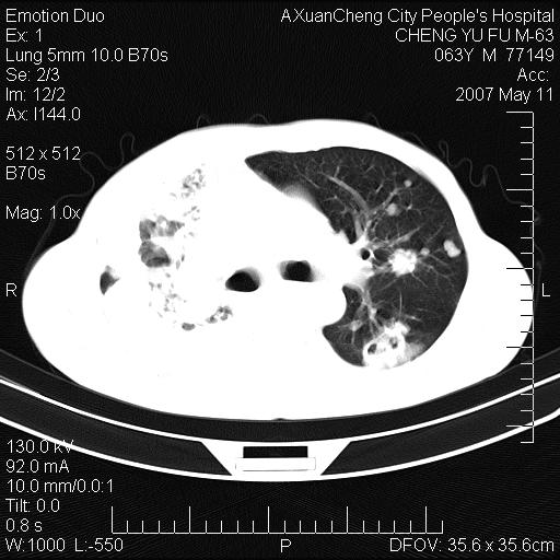 以下是引用小初学者在2007-5-11 19:32:00的发言:[br]1、首先考虑干酪性肺炎支气管播散[br]2、支气管肺泡癌待排