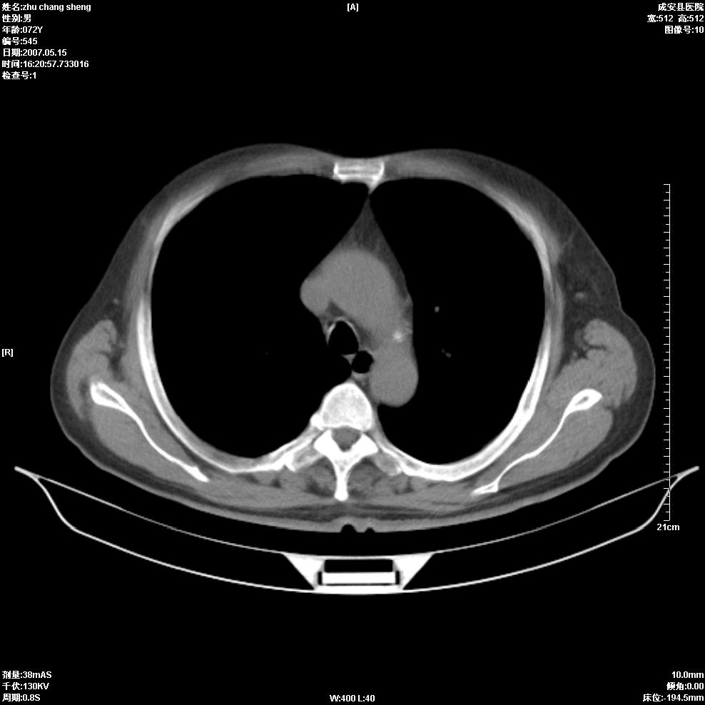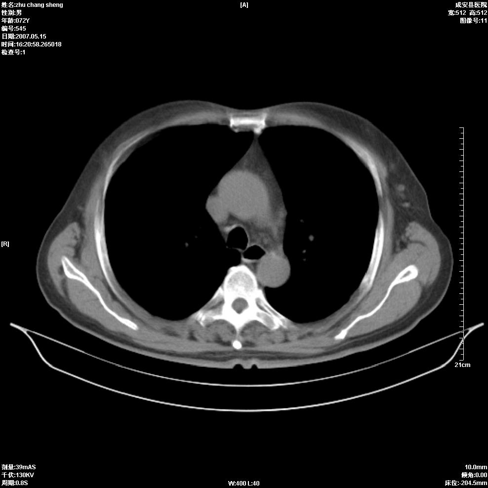 以下是引用还珠格格在2007-5-19 9:50:00的发言:[br]病人与5月18日 做了核磁增强扫描 确诊为前上纵隔侵袭性胸腺瘤。
