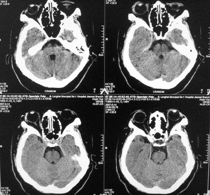 以下是引用天南地北在2007-5-15 23:30:00的发言:[br]看不出来什么[br]建议冠面增强扫描,或mri检查