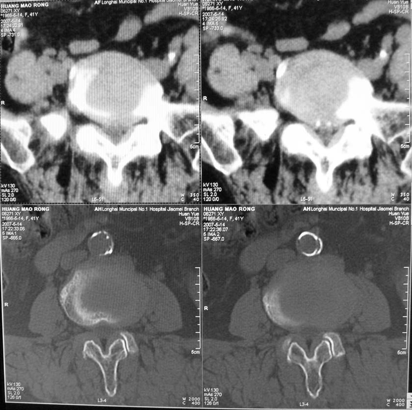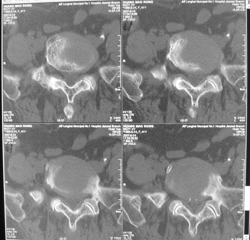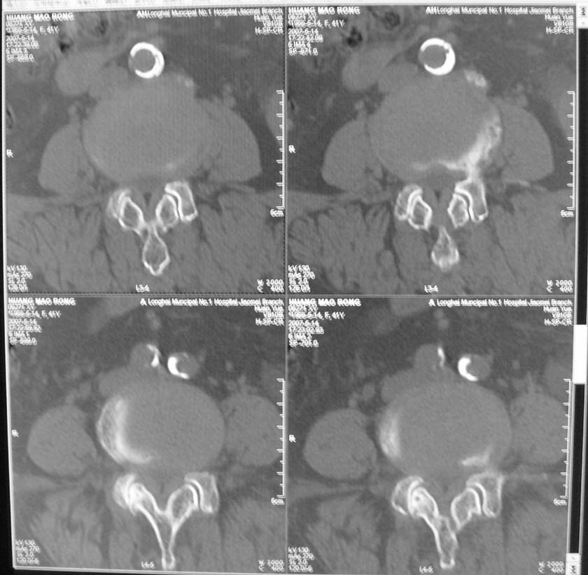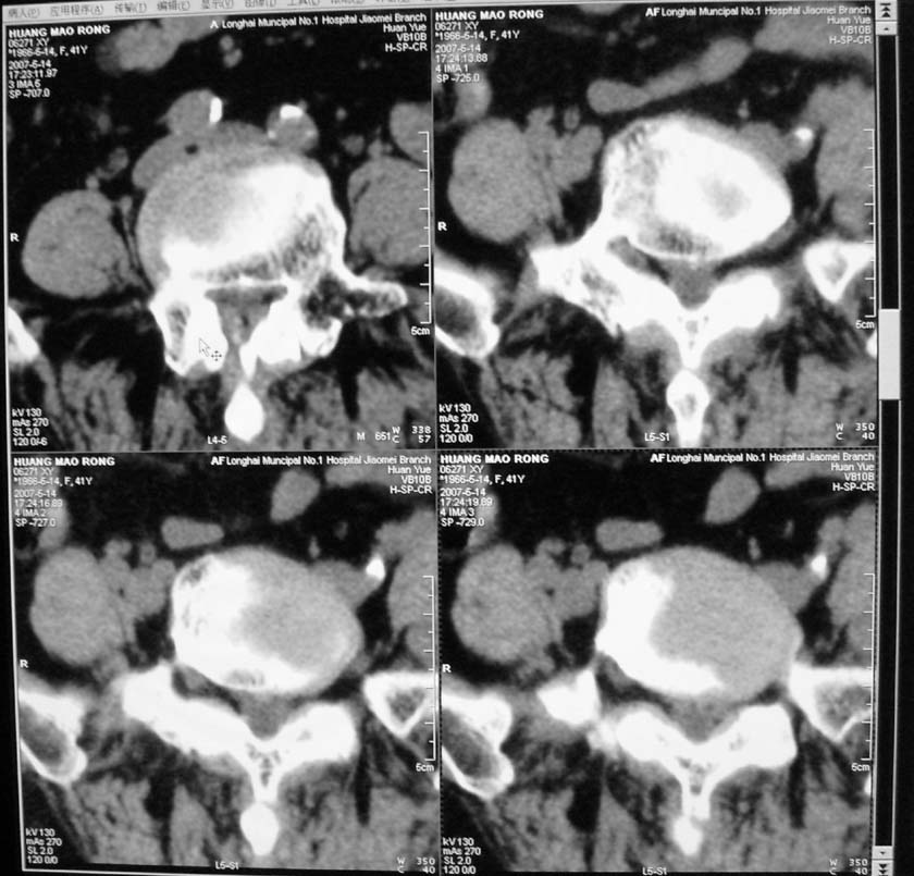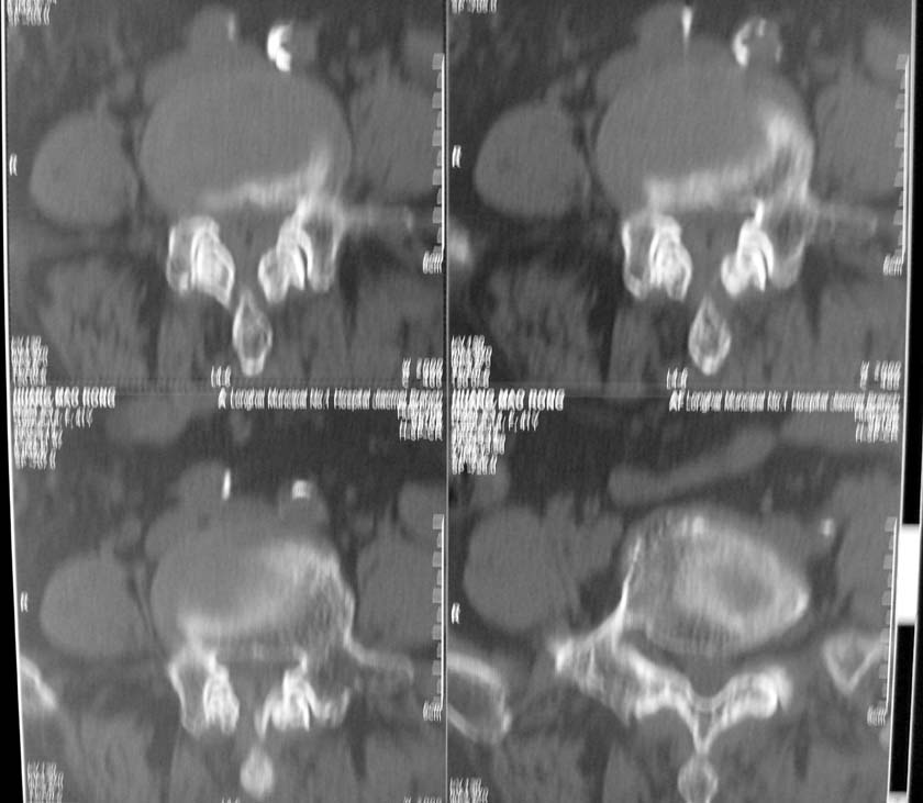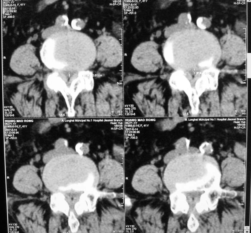 以下是引用jiangjing在2007-5-16 11:05:00的发言:[br]zhichi [br]ct所见:[br]l4-5椎间盘膨出,双侧黄韧带增厚,致使对应椎管变窄,硬膜囊受压.[br][br]l5-s1椎间盘后突,其后硬膜囊受压.l3-4椎间盘未见突出征象.[br]诸椎体边缘及对应椎小关节突骨质增生.腰椎生理曲度正常.[br]腹主动脉壁广泛钙化.[br]印象:[br]1、l4-5椎间盘膨出并双侧黄韧带肥厚及椎管狭窄。[br]2、l5-s1椎间盘突出。[br]3、腰椎及椎小关节退变。
