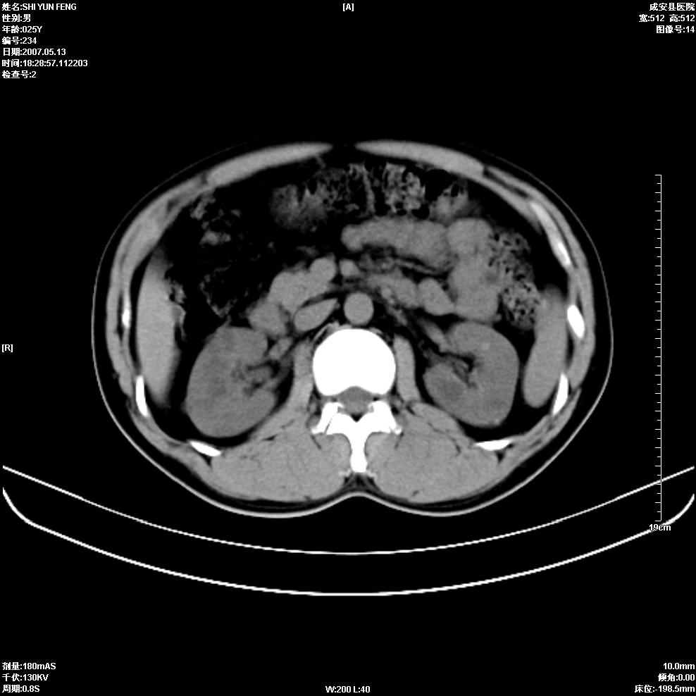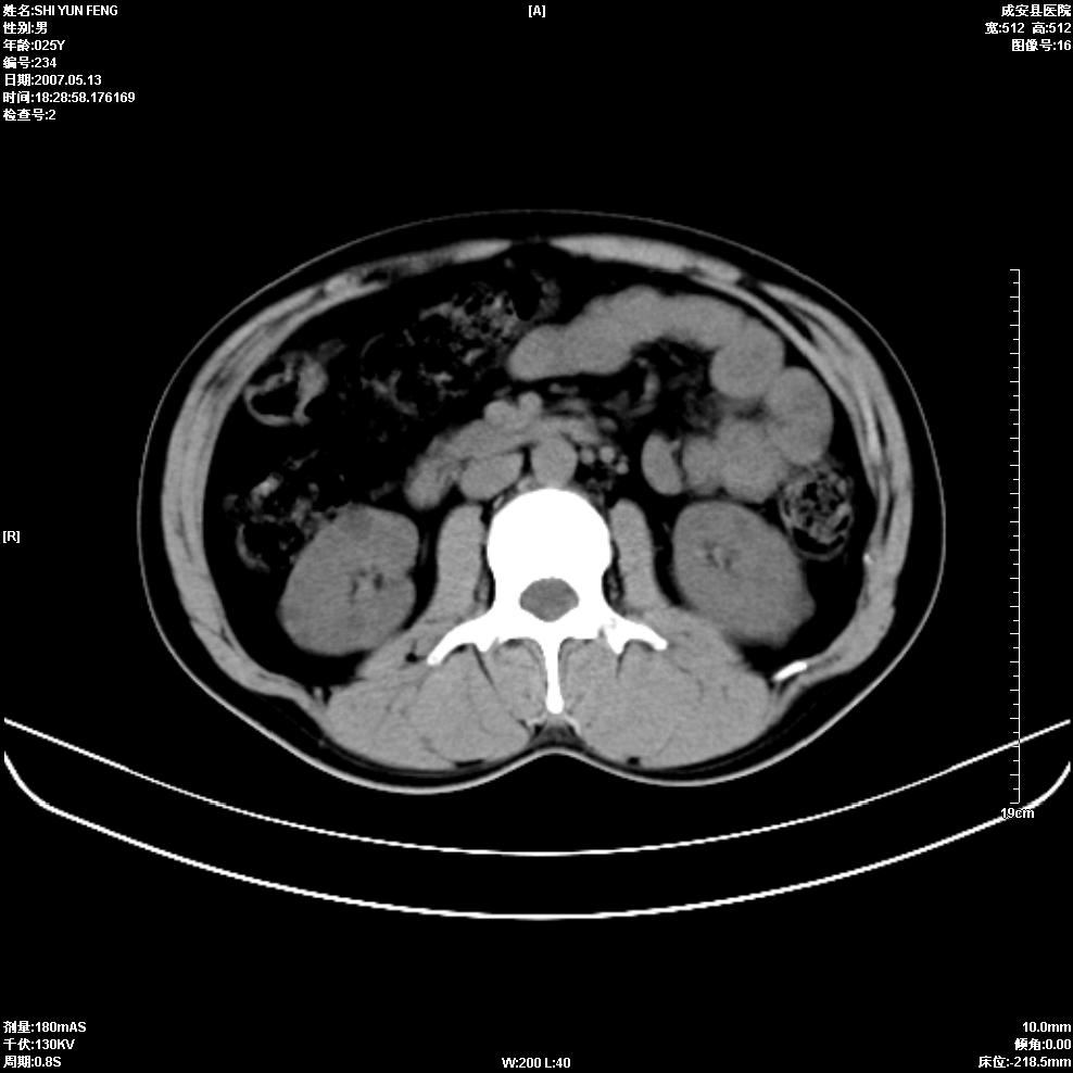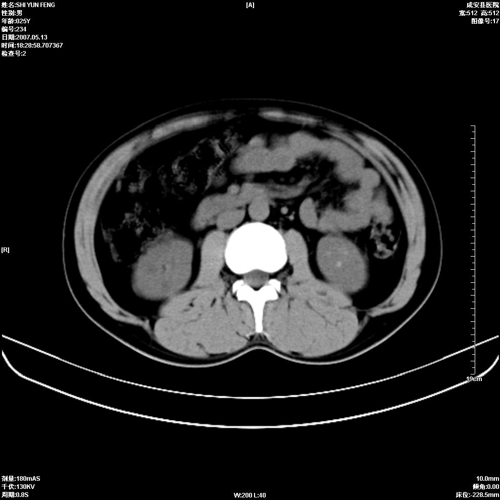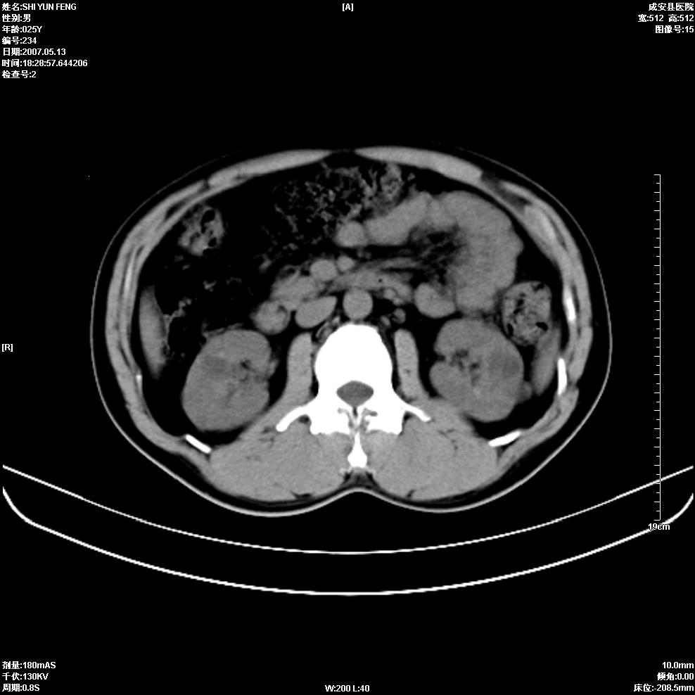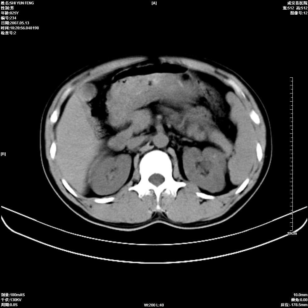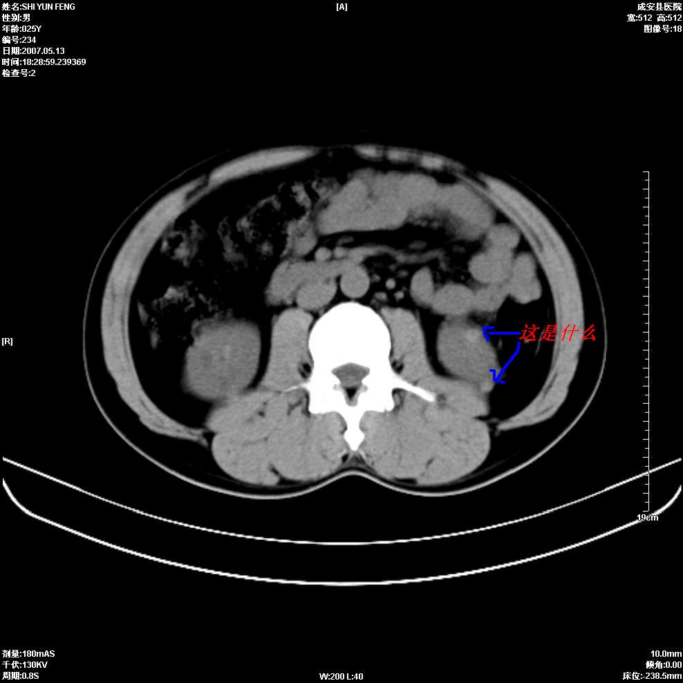 以下是引用zhangzhongshou在2007-5-16 7:36:00的发言:[br]多发性肾囊肿,不是多囊肾,楼主箭头所指多考虑左肾囊肿内结石或钙乳,髓质海绵肾不完全除外。