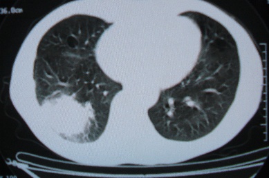 考虑右下肺脓肿可能
