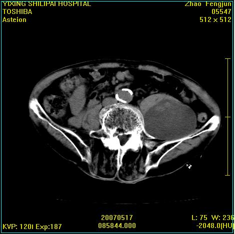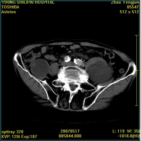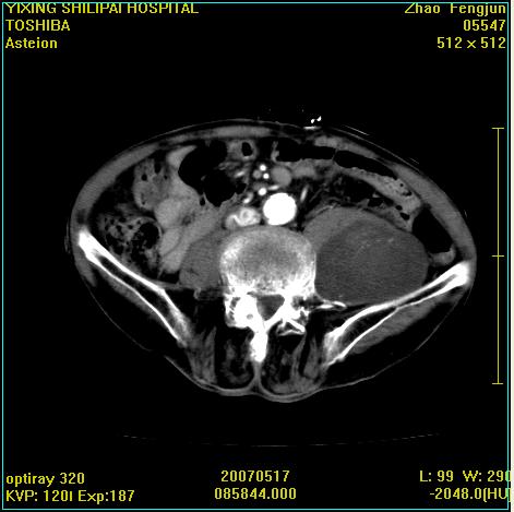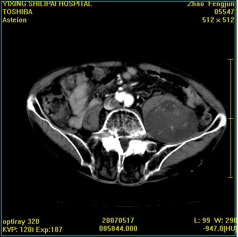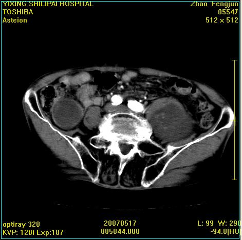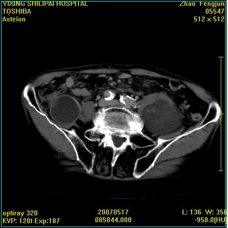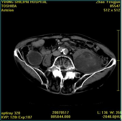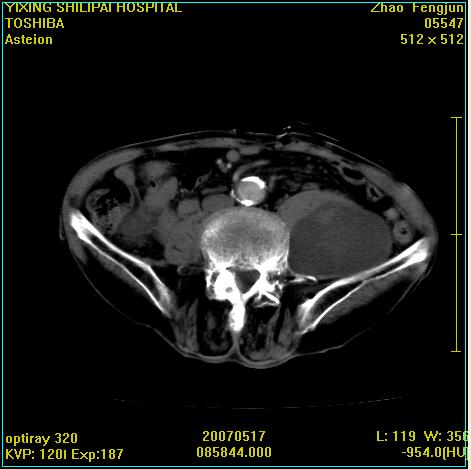 以下是引用天南地北在2007-5-26 12:44:00的发言:[br][quote]以下是引用dyqct在2007-5-26 12:10:00的发言:[br]考虑:1、左侧腰大肌囊实性占位性病变(囊性神经根鞘瘤?);[br] 2、右侧兰尾区囊性占位性病变(兰尾囊肿?囊腺癌?类癌?)