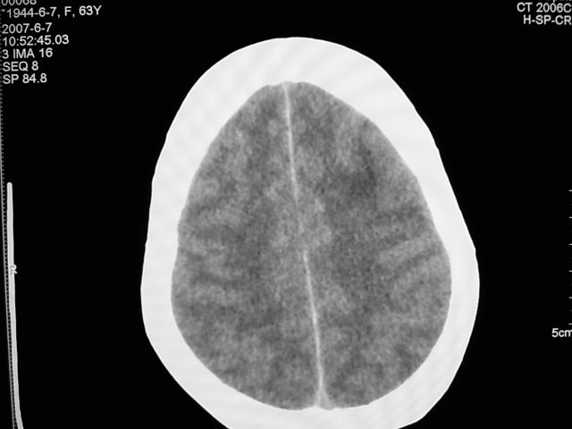 患者 女 63岁,近几周感觉头部不适来查体。