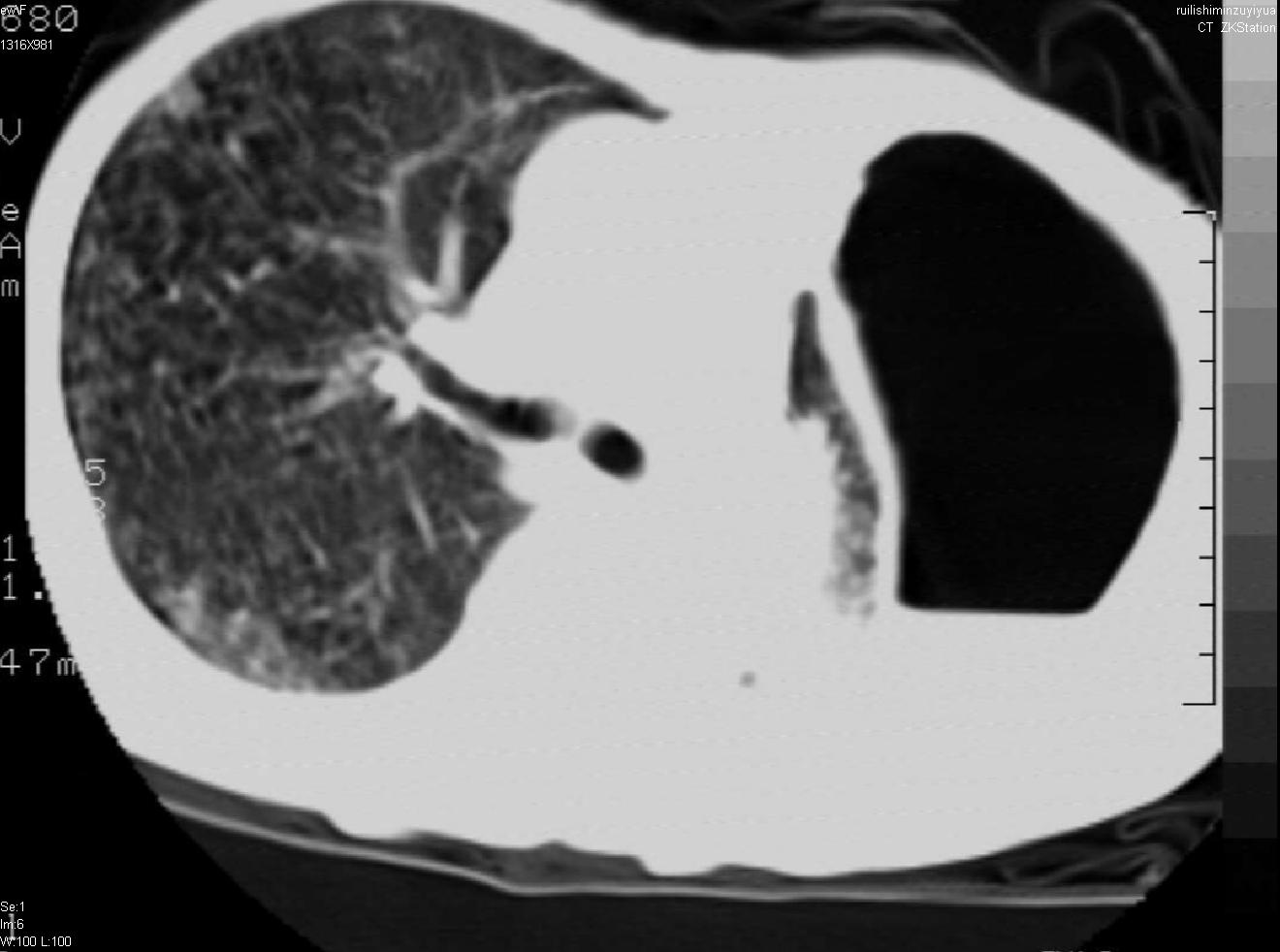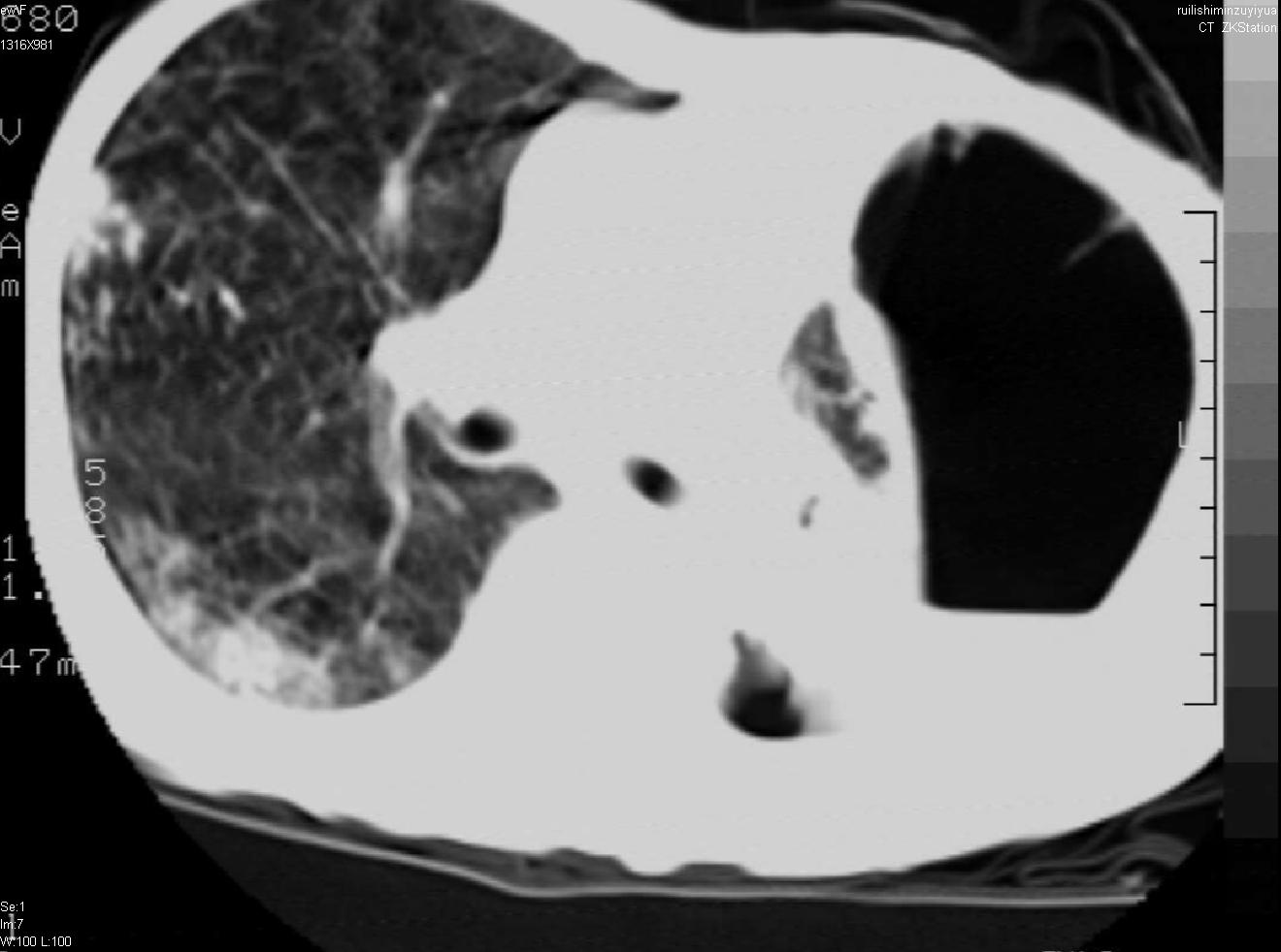 以下是引用余辉在2007-6-12 19:29:00的发言:[br][quote]以下是引用尚峰在2007-6-11 22:44:00的发言:[br]慢阻肺、肺纤维化、肺大泡、气胸形成,此患者有没有急性病史?