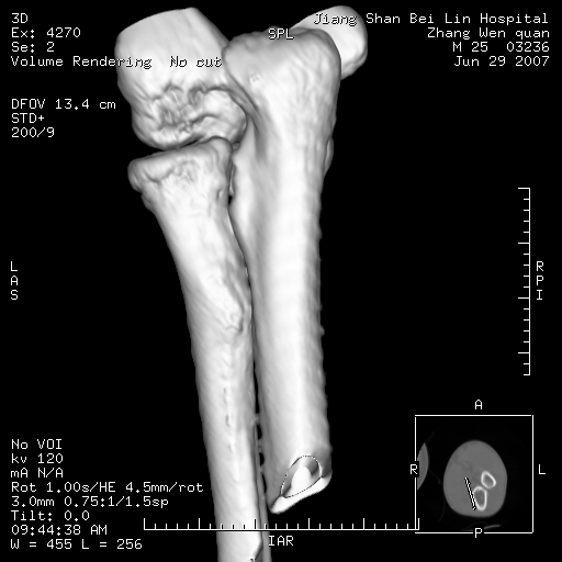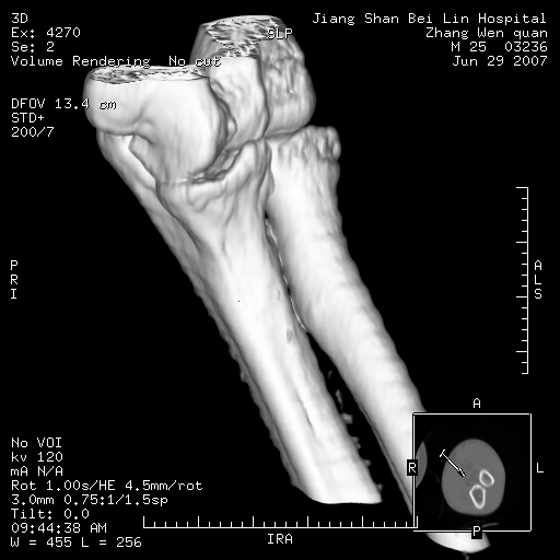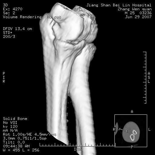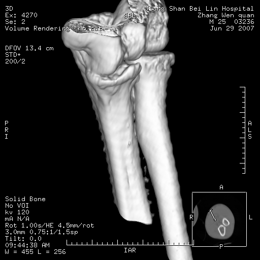 患者男27岁,2007年3月查出患上肘关节滑膜结核,此后行手术滑膜剥除,今查ct