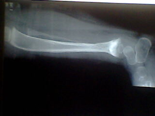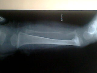 以下是引用zhangzhongshou在2007-7-10 21:13:00的发言:[br]腓骨骨质溶解,大块骨质溶解症可能性大,建议进一步询问病史,进一步检查。有既往片价值更高。[br][br][本贴已被 zhangzhongshou 于 2007-7-11 21:12:57 修改过]