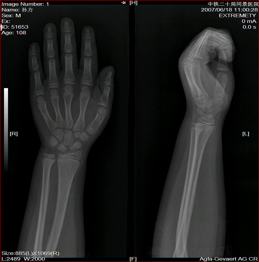 这个人骨龄为9.5岁。实际年龄为17岁?